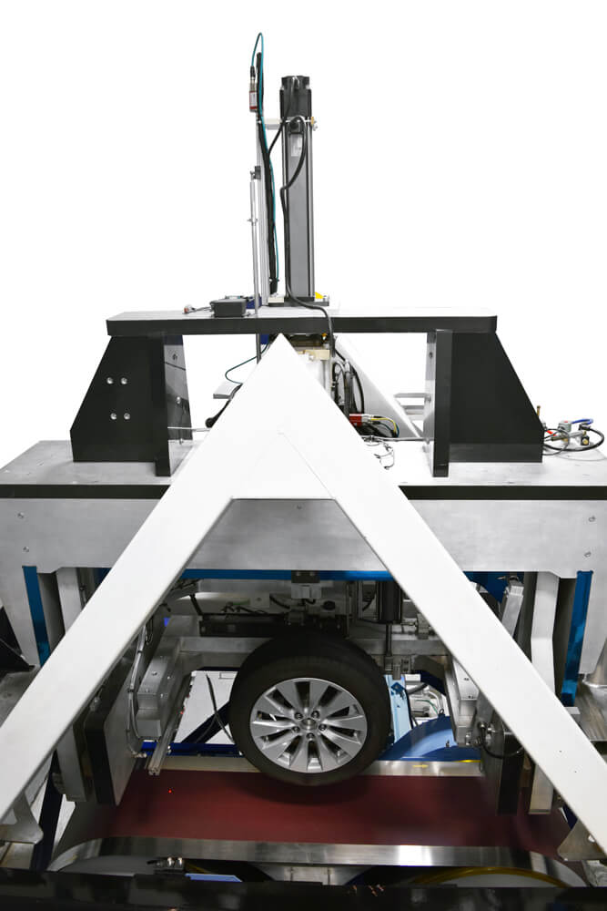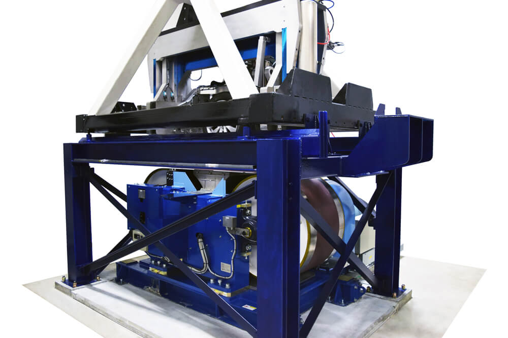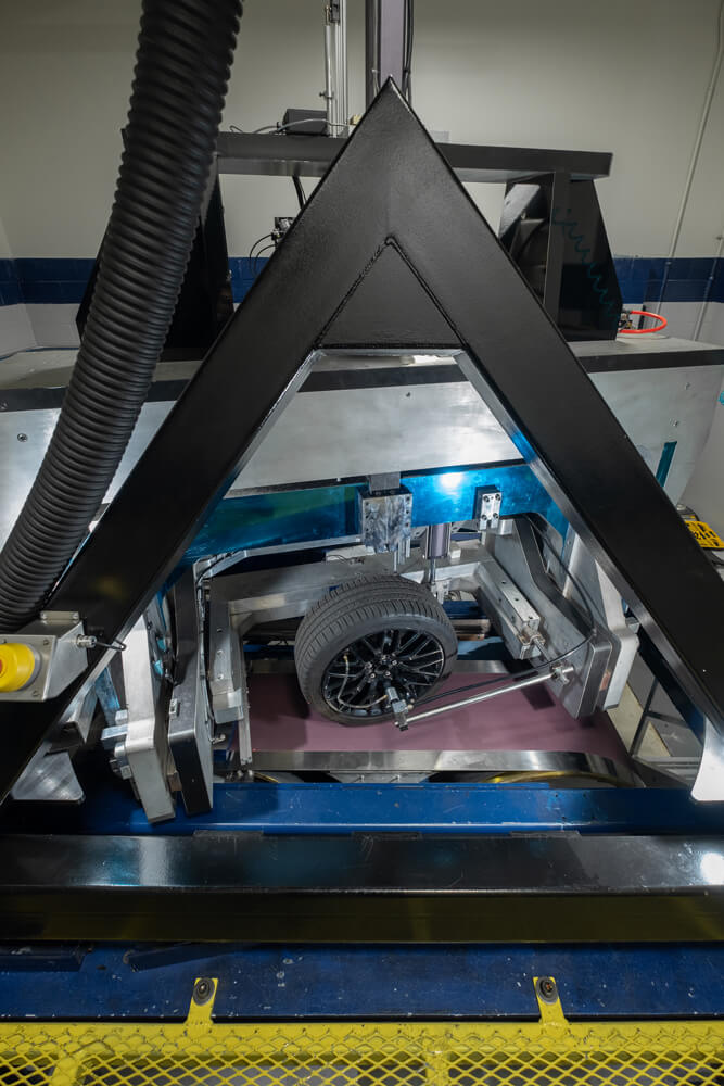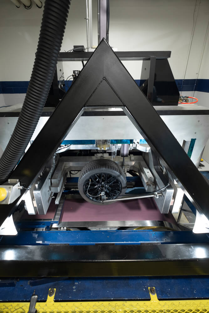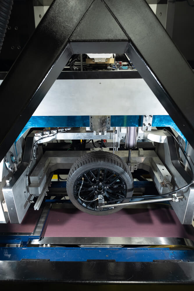 The 321 Flat Belt Machine can perform parking forces, a one-of-a-kind capability used to accurately determine forces encountered by the tire and steering components during parking or similar events. This capability was designed to provide the customer a tool for accurately predicting the forces applied to the tire, suspension and steering mechanisms during the most extreme conditions of operation.
