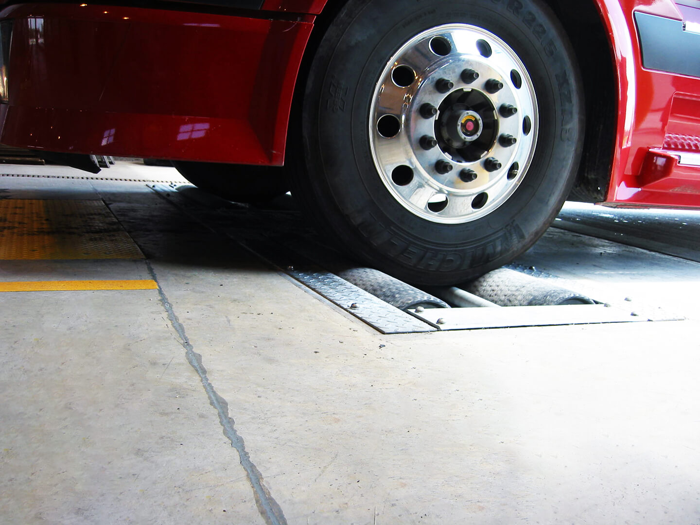 The Model 14200 Roller Brake tester (also known as a Performance-Based Brake Tester or PBBT) uses two large rollers and one small center roller, one-meter-wide, on each wheel, to test vehicles with axle loads up to 20,000 kg. Optional wider rollers and the split sub frame design allow the user to customize the track width range during installation, allowing for a wide range of wheel tracks. A rugged aluminum en¬closure houses large and easy-to-read analog and digital displays of relevant test data.
