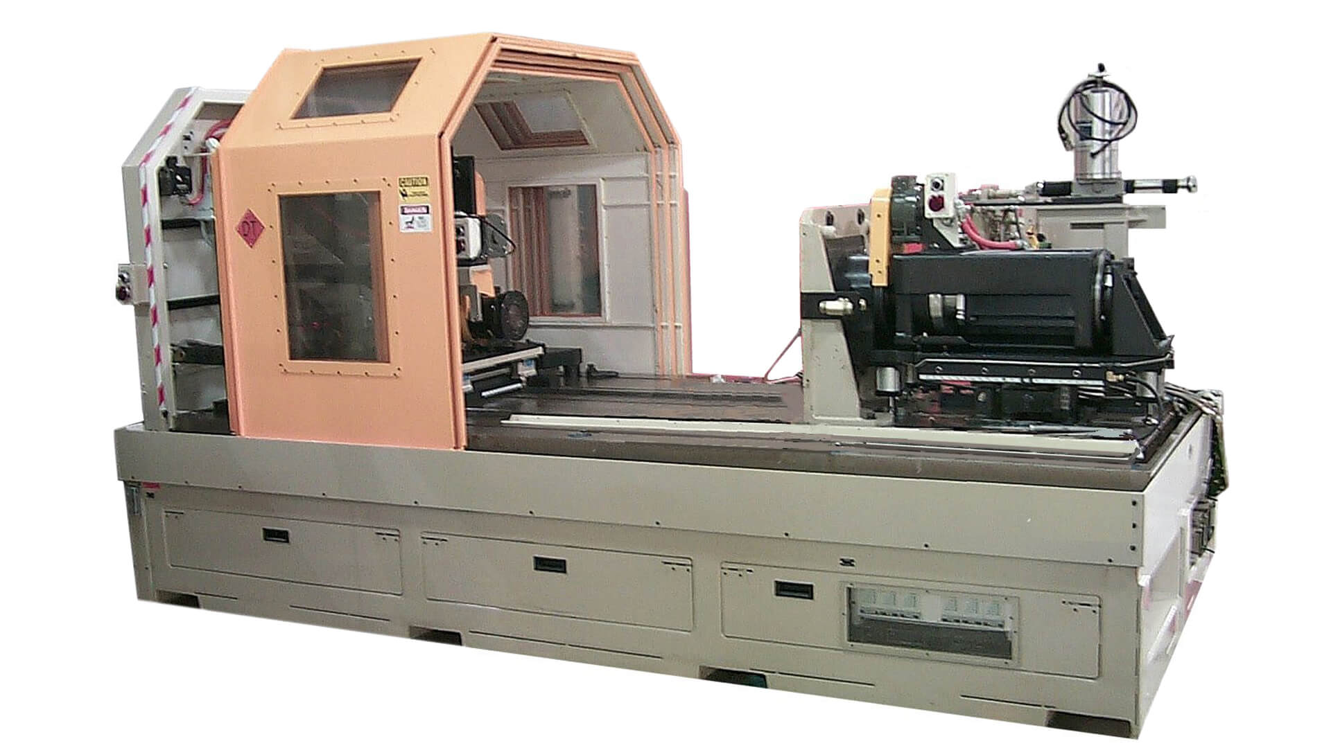 The Model 2090 is used to determine case and component fatigue for automatic transmissions. It determines the effects of individual component variability with respect to temperature, torque, operating pressure, and part lubrication. Tests are conducted by cycling each gear range at preselected pressures and input/output torque levels.