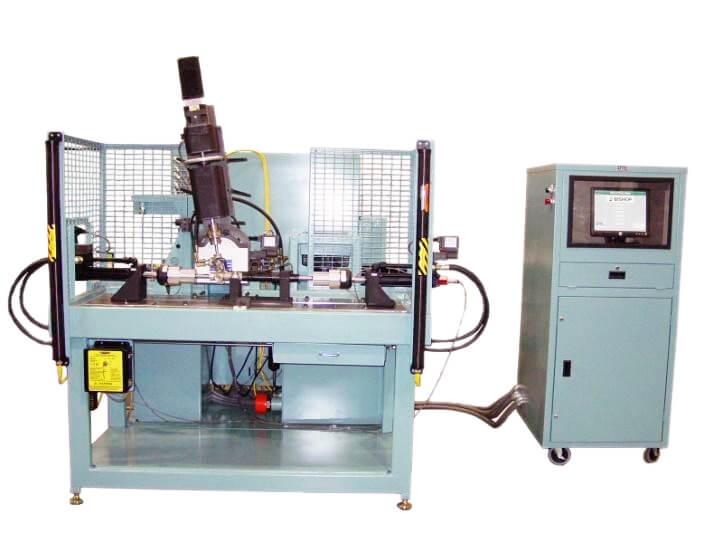 The power steering fluid is flow/pressure controlled to emulate the power steering pump in a vehicle. Several sensors measure input and output forces and torques on the specimen, while the linear and rotary positions of the parts of the specimen are also measured. This information is collected, stored, and displayed by the software running on the PC.