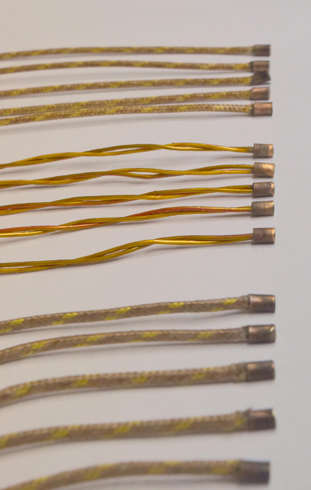 - Wires are silver brazed inside a 1/8th inch diameter copper cap